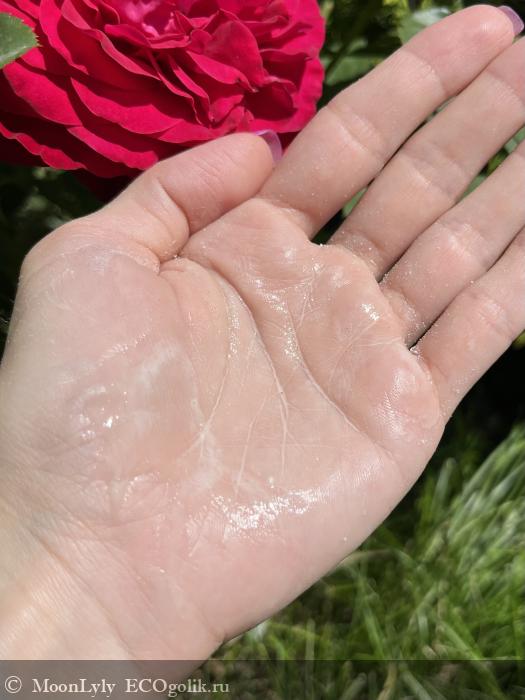 Лёгкими движениями без нажима массирую кожу со средством в течение 1-2 минут. Пальцами я чувствую нерастворившиеся крупицы, которые от трения постепенно становятся однородными.