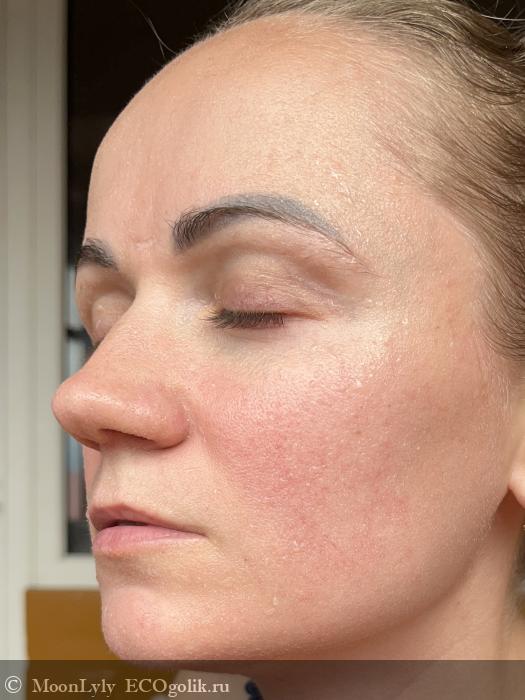 Визуально лицо выглядит свежее, светлее и румянее. На ощупь кожа более гладкая и нежная, чем до умывания. Она абсолютно чистая, энзимы "съедают" жирный блеск, поры чистые. При регулярном использовании кожа приобретает здоровый равномерный тон.