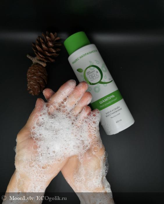 Наверное у многих был этап перехода с сульфатных шампуней на бессульфатные (часто встречается написание беЗсульфатный), когда с трудом привыкаешь к более низкому пенообразованию. И для таких случаев, чтобы не свернуть с правильного пути, существуют как бы промежуточные шампуни, как у Индекса натуральности. Вроде без агрессивных ПАВ'ов SLS и SLES, а пенится так хорошо, что хватит на мыльную бороду, как у Санта Клауса🎅