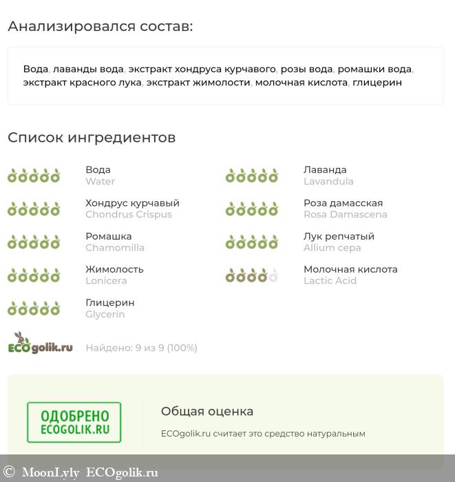 Жидкость выходит прозрачная и бесцветная, как вода. Но в отличие от воды она прекрасно пахнет лавандой. Это и неудивительно, ведь гидролат лаванды находится на 2-м месте в списке ингредиентов.