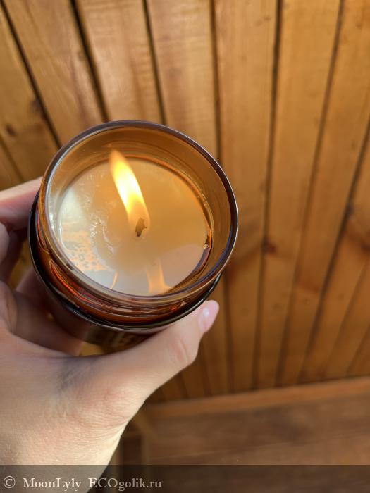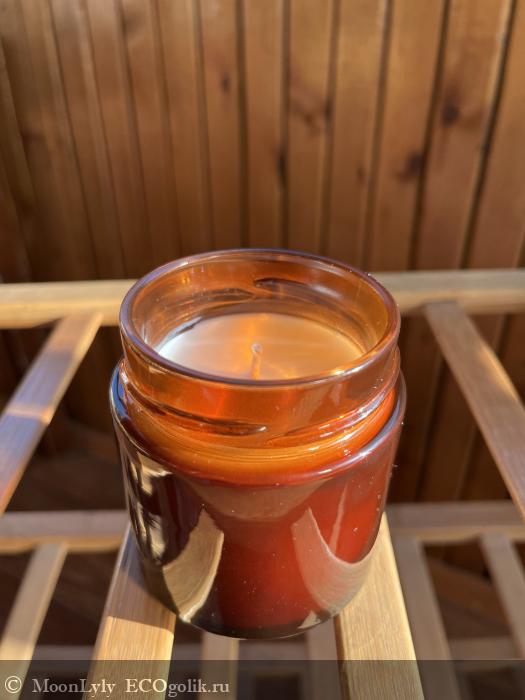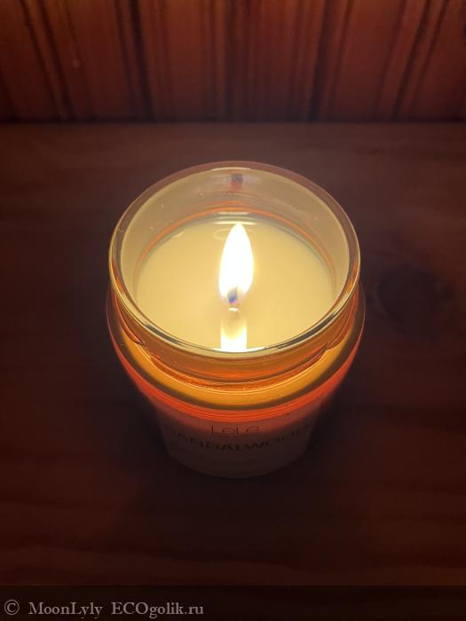 Аромат быстро наполняет не только всю комнату, но и помещение, в моём случае, это 3-комнатная квартира. Поначалу ощущается мускатный орех с ванилью. Не синтетическим ванилином, а именно стручковой ванилью. А потом в воздухе разливается цветочно-древесный аромат. Запах тёплый, сладкий и обволакивающий. Становится сразу как-то уютно. Мне нравится та лёгкость в ароматизации пространства, без тяжести, когда хочется немедленно погасить свечу. Нет, моя красавица LeLe Candles спокойно горит и час, и два, наполняя воздух вкусным ароматом. Детям запах тоже понравился, а ещё им нравится процесс тушения свечи
