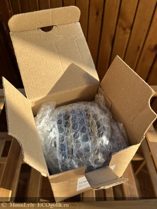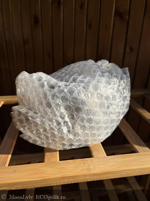 Для безопасной транспортировки, она дополнительно обёрнута двумя слоями пупырчатой плёнки. Плюс на коробке стоит отметка, что внутри СТЕКЛО.
