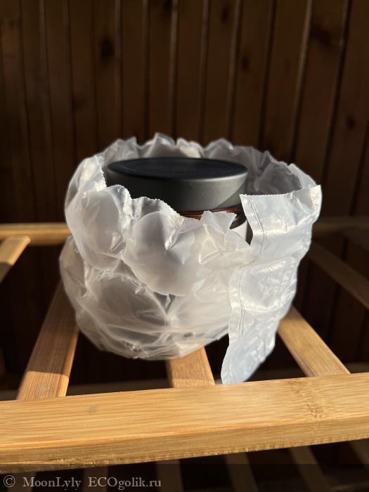 Аромасвеча рассчитана примерно на 40 часов горения. Я зажигаю её на 1-2 часа в день, так что баночки мне должно хватить чуть ли не на месяц. Важный момент, что после застывания воска, поверхность абсолютно ровная и кончик фитиля остаётся длинный, так что его удобно снова зажигать.