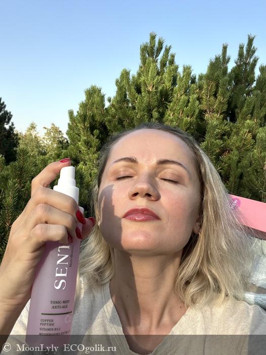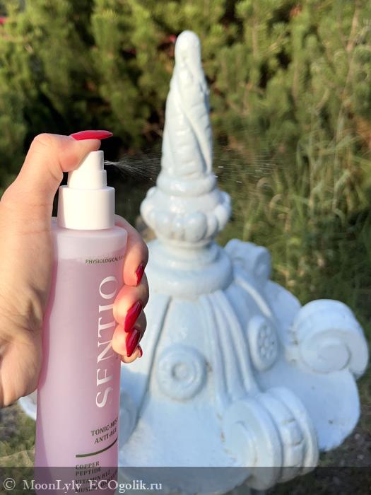Я пользуюсь Антивозрастным тоником-мистом для лица Sentio ежедневно. Иногда утром, иногда вечером. После умывания распыляю спрей на чистое лицо, шею и декольте.