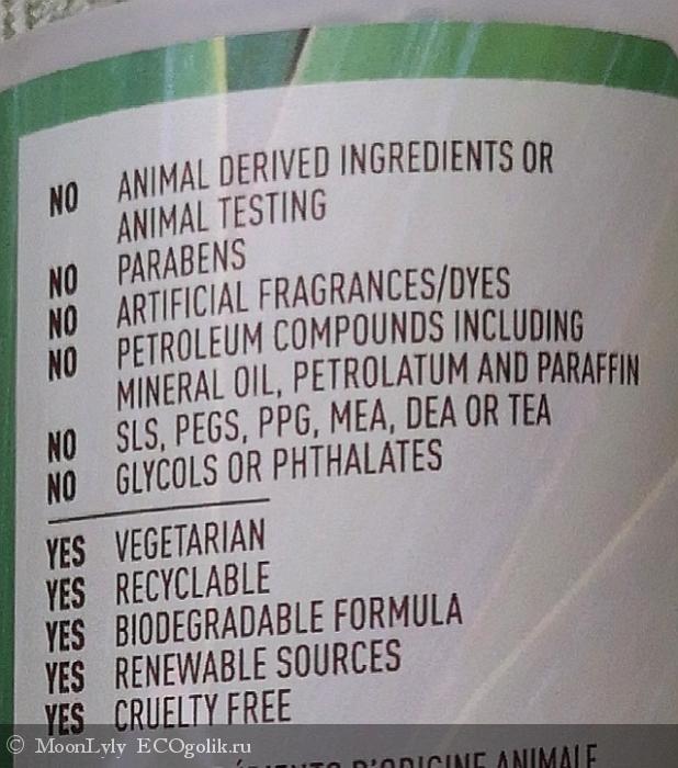 • Шампунь НЕ содержит: парабена, ароматизаторов, красителя, минеральных масел, парафинов, СЛС, PEGS, DEA/TEA, гликоля, фталата и др. Не тестируется на животных.
