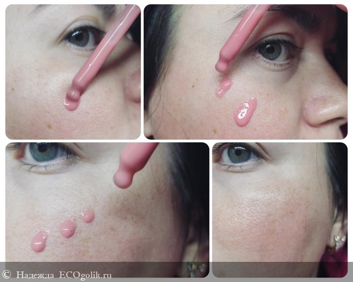 Расход при такой консистенции очень экономичный. Достаточно нанести несколько крупных капель, чтобы хватило на всё лицо и шею. И тогда даже не потребуется удалять излишки салфеткой.