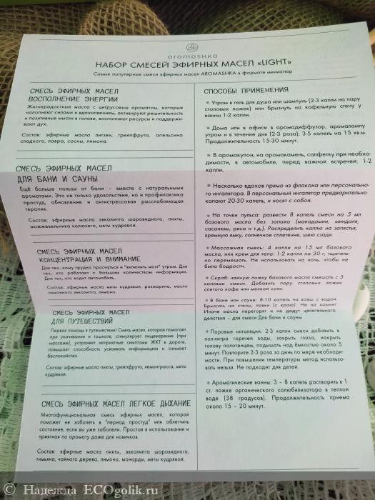 Более подробную информацию о наборе Light можно прочесть на сайте Аромашка.