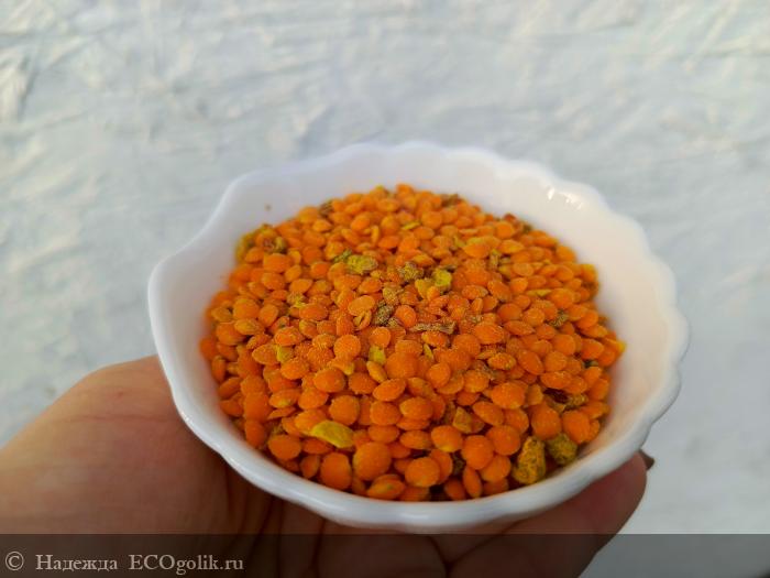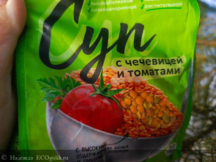 чечевица красная, овощная смесь (томат сушеный, лук репка, морковь, паприка красная, укроп, петрушка, лук-порей, пастернак корень), куркума молотая, перец чили молотый.