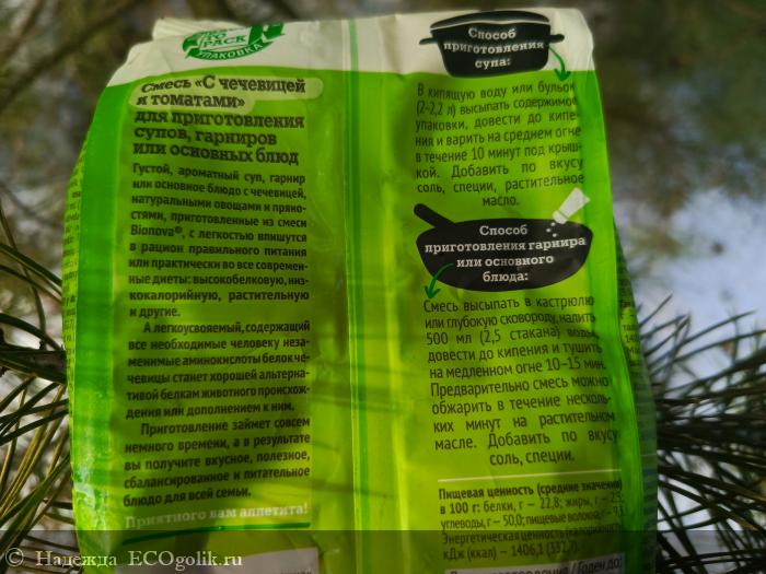Речь о Смеси для приготовления супа или гарнира с чечевицей, кус-кусом и кукурузной крупой от Bionova