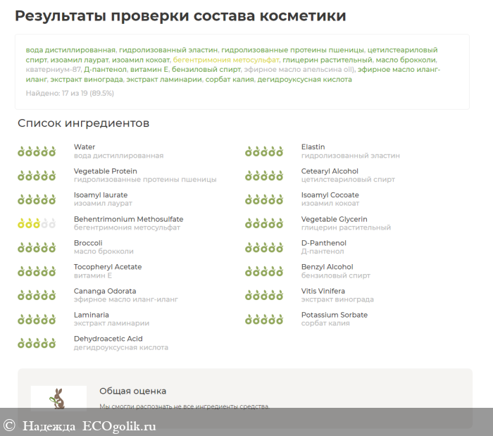 При общей проверке не обнаружен один ингредиент, пришлось отдельно его найти и к сожалению он оказался с отрицательной оценкой
