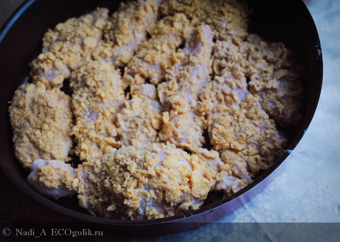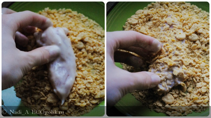 5. Осталось только хорошенько обвалять курочку в хлопьях
