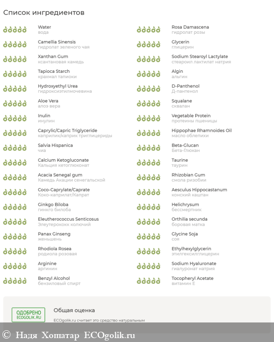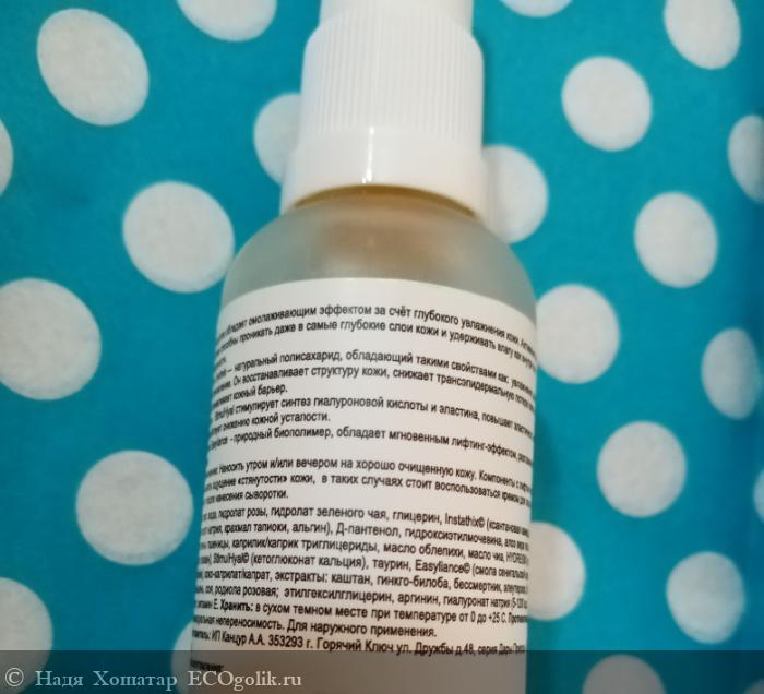 Состав серума не просто натуральный, природный. Он при этом очень ценный благодаря множеству антиоксидантов, питательных масел (облепихи, чиа и другие), увлажняющих ингредиентов (мочевина, сквалан, конский каштан, низкомолекулярная гиалуроновая кислота, гель алое вера).