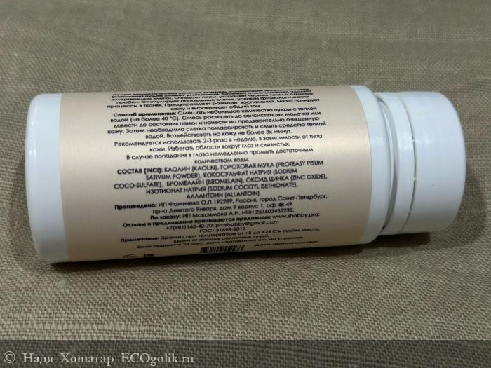 Объем пудры составляет 50 г. Цена – 680 рублей на официальном сайте. Продукт с содержанием бромелаина и папаина позволяет без травматизации кожи не только очистить поры от сальных пробок, но и создает матовость, является профилактикой возникновения прыщей. Благодаря отшелушиванию не только удаляются мертвые клетки, но и ускоряются обменные процессы в тканях кожи. Кожа полируется, выравнивается. Для меня это важно, потому что в целом кожа рыхлая. А после использования энзимной пудры она становится ухоженной, красивой, гладкой.