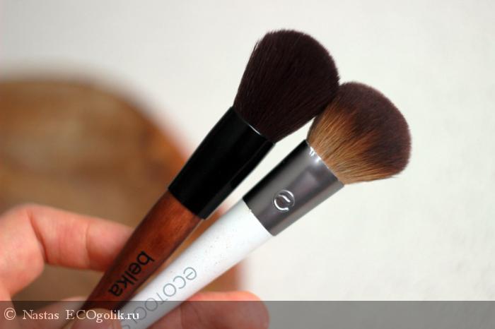 Кисточка добротная, качественная, с деревянной ручкой и фирменным логотипом "belka". Ворс синтетический и это самое лучшее для минеральной косметики, поскольку он лучше набирает пудру и так же отдает, не впитывая её в себя, как натуральный.