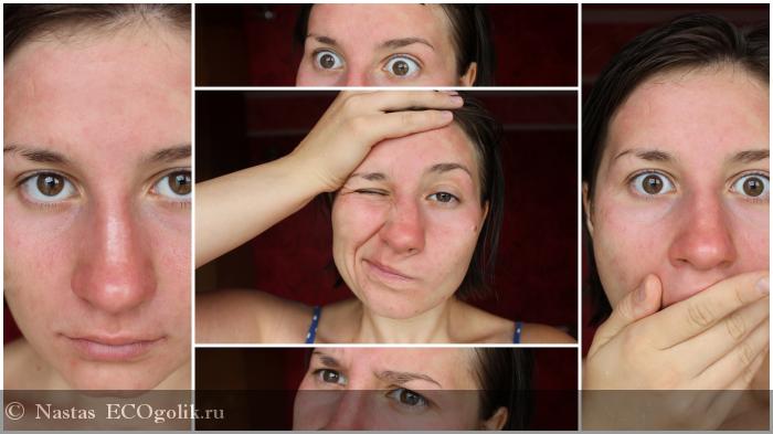 Хоть он и без запаха, но при распылении попадает в нос и это очень неприятно, заставило меня закашляться. Ошибка номер два: надо всё-таки наносить с помощью ватного диска, ибо через две минуты моё лицо превратилось в красный горящий блин!