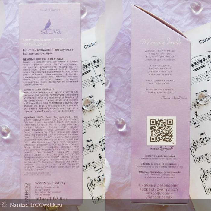 Понравилась ли мне новинка от Sativa– биомный крем-дезодорант? Да я просто в восторге! Он отлично облегчает жизнь и делает её более комфортной, безопасной и натуральной.