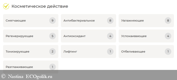 А вот такое косметическое действие средство оказывает на кожу: