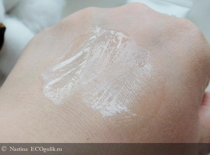 Как я уже и писала, флюид очень приятный тактильно. У него легкая гелевая консистенция, которая скользит по коже и быстро впитывается. Наличие глины в составе меня очень удивило, ведь консистенция однородная, гладкая и не видно никаких вкраплений.