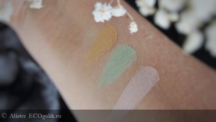 Определенно каждый из них работает, только так сложилось, что ни розовый, ни бежевый мне не подошли по оттенкам, а без зеленого я могу спокойно прожить. Зато эта троица определенно подойдет визажистам, ибо они работают с разными людьми и самыми разными оттенками кожи.