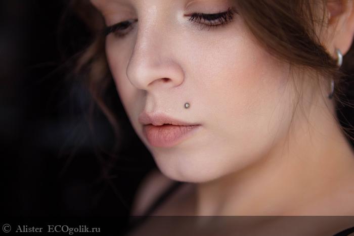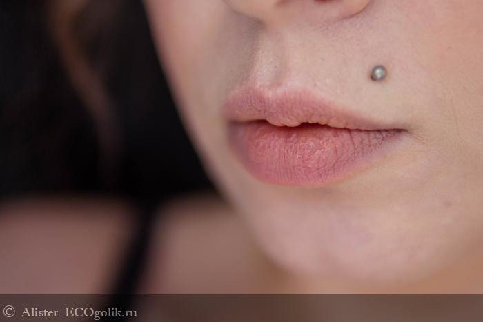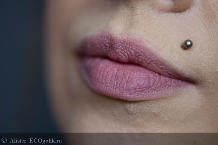 По стойкости он тоже оказался слабоват на губах, быстро съедается, хотя небольшой теплый тон все же слегка просвечивается на губах.