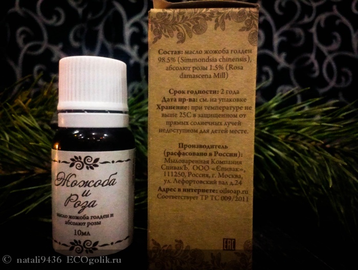 Смесь содержит нерафинированное масло жожоба 98,5% и абсолют розы (Болгария) 1,5%.