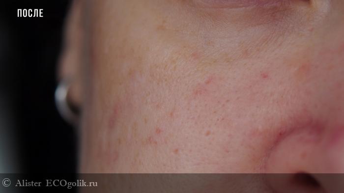 Обещала эффективное отшелушивание, уменьшение появления гиперпигментации, видимое улучшение тонуса и текстуры кожи за счет АНА кислот (сахарная, гликолевая, винная, яблочная и молочная), но и этого нет. Текстура кожи осталась без изменений с мелкими подкожниками, пигментация не посветлела ни на чуточку и продолжала появляться после воспалений.