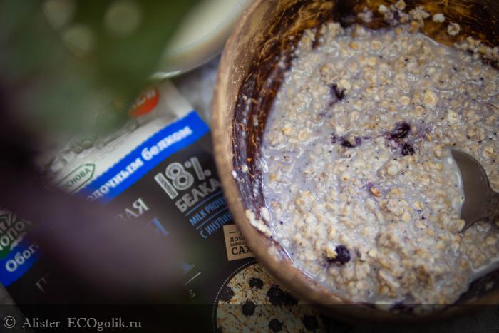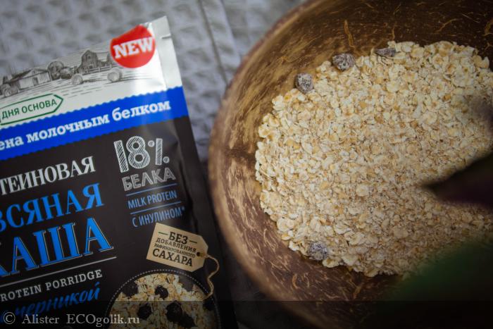 Это натуральная протеиновая овсяная каша без добавления сахара, которая содержит 18 % белка, медленные углеводы и пищевые волокна, в том числе инулин.