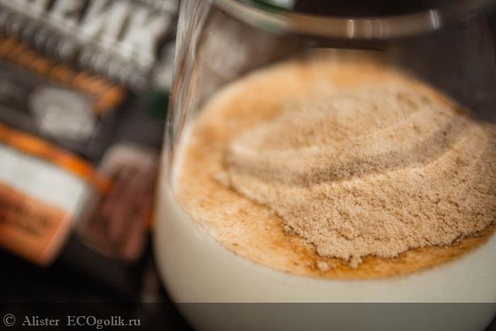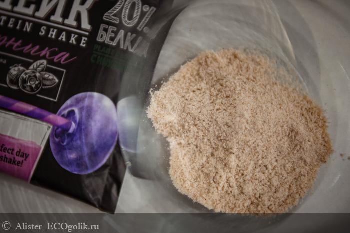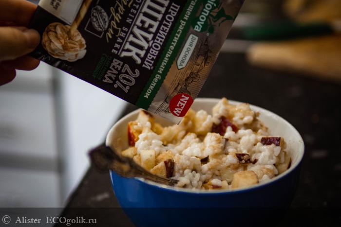 Сахар я не добавляла, потому что шейк для меня и так чересчур сладкий. Каша конечно приобрела этот ненавистный мне аромат протеиновой смеси, но в таком виде он уже легче переносился.
