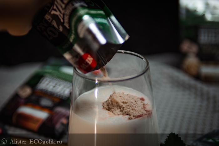 Способ приготовления: содержимое пакета высыпать в кружку объемом 250–300 мл или шейкер, добавить 150–200 мл молока предпочтительной жирности или любого «растительного молока» на Ваш вкус, интенсивно перемешать до получения однородной консистенции.