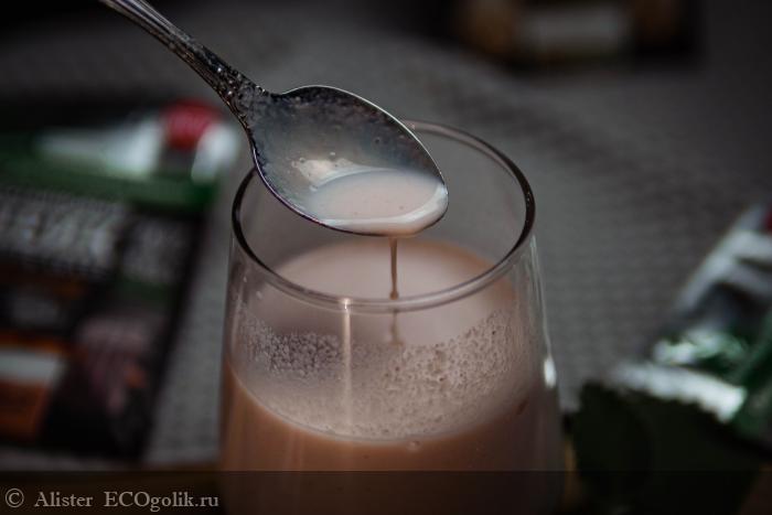 Консистенция все та же, однородная мелкая и ароматическая составляющая все таже с добавлением более яркого какао. Мне все сложнее дается употребление шейков именно из-за аромата, но я не останавливаюсь.