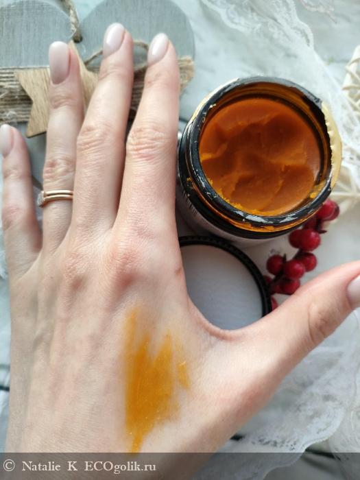Облепиха придает средству не только яркий оранжевые аромат, она и смягчает кожу, быстро заживляет трещинки и раны, даже места, где есть царапины или мозоли, полученные от новой обуви. Облепиха имеет так же сильный противовоспалительный эффект.