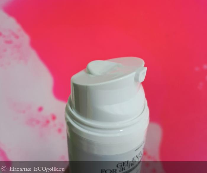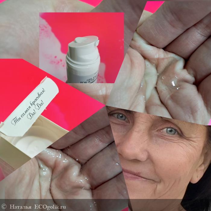 Гель обладает средней густотой и желеобразной текстурой, которая легко распределяется по коже, не растекается и не создает ощущения липкости. Прозрачность геля придает ему ощущение чистоты, словно капля росы на лице