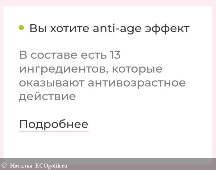 В составе много ингредиентов очень положительно влияющих на кожу лица. Особенно на возрастную, как у меня