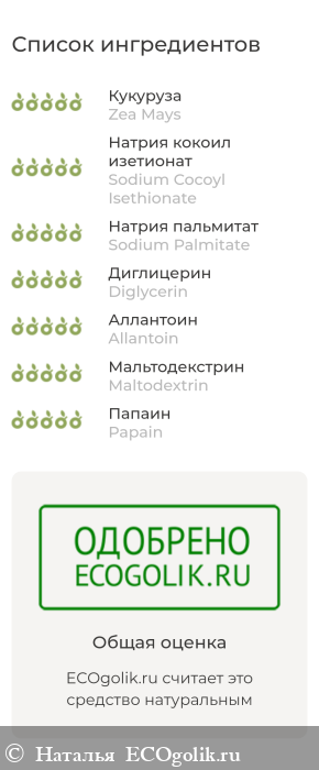 Сайт проверки экоголик одобряет входящие в состав компоненты.