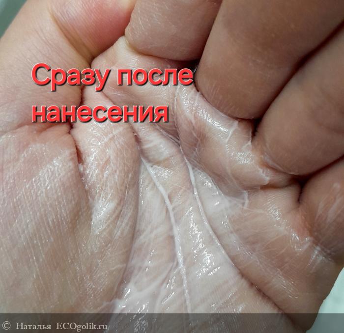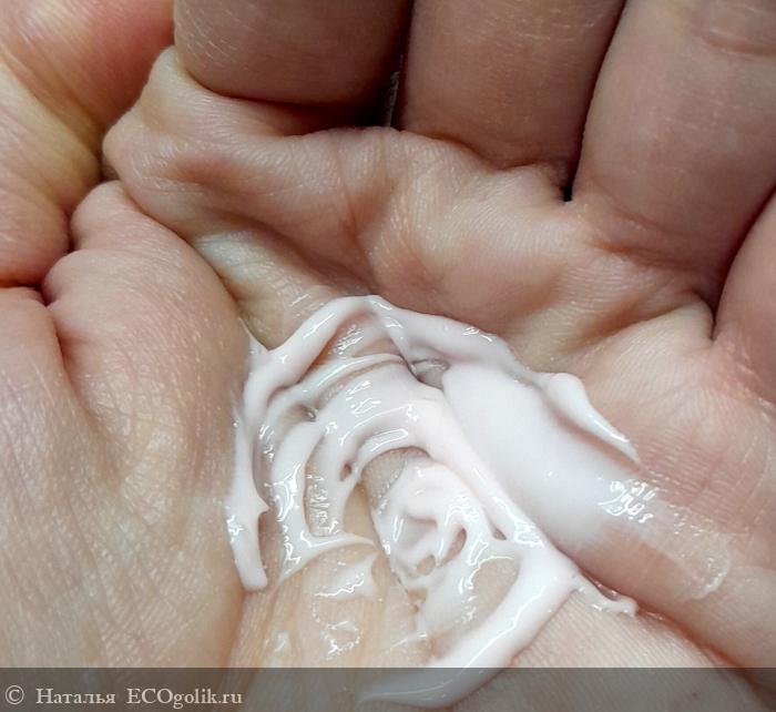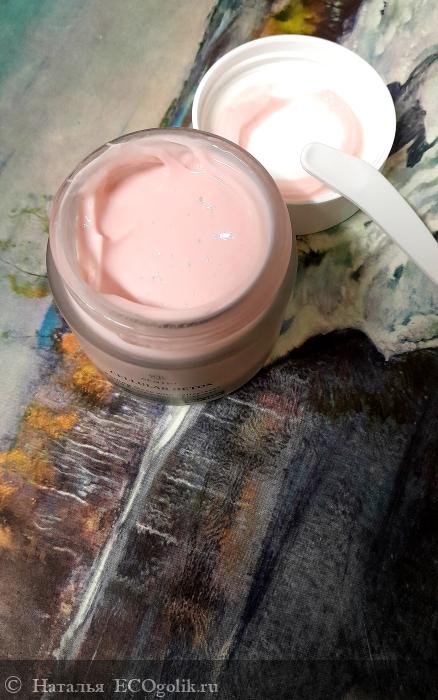 Маска имеет нежную кремовую текстуру. После применения кожа не стянута, матовая без жирного блеска, тон и поверхность более ровные.