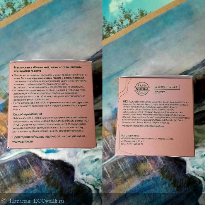 Здравствуйте экоголики и читатели данного сайта! Сегодня хочу поговорить о Маска-скатка «Клеточный детокс» с салицилатами и энзимами граната Sentio