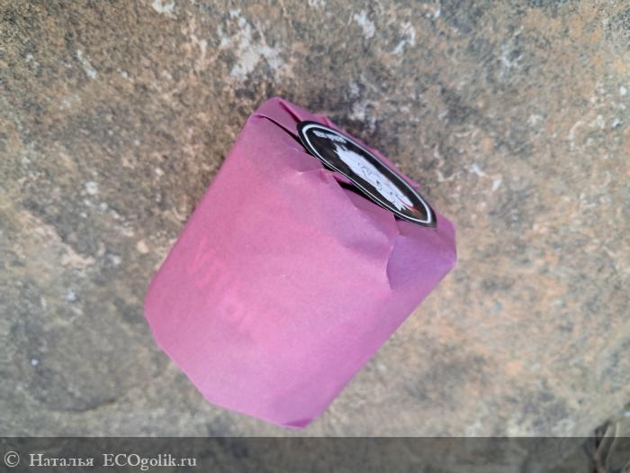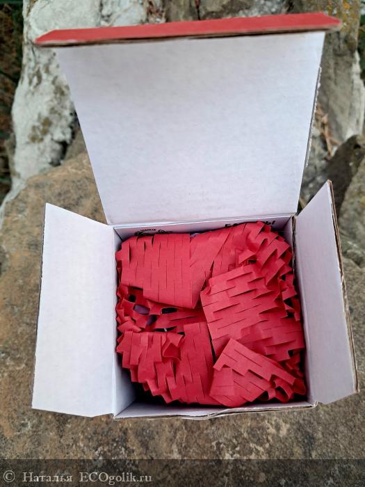 Доставляется свеча в крепкой картонной красной упаковке. На коробку наклеяна черная наклейка с названием и всей информацией о товаре. Это очень удобно.