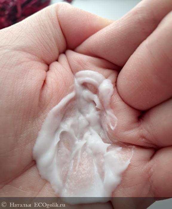 Текстура скраба густая и кремообразная что обеспечивает удобство нанесения и равномерное распределение по коже. Она легко распределяется по поверхности кожи, не растекается и не оставляет ощущения липкости. Мелкие абразивные частицы мягко массируют кожу обеспечивая деликатное очищение без раздражения.