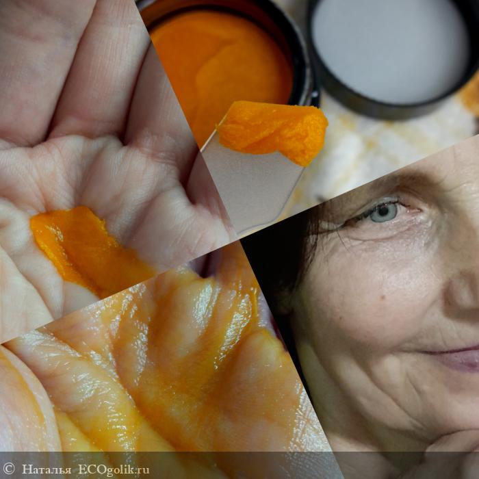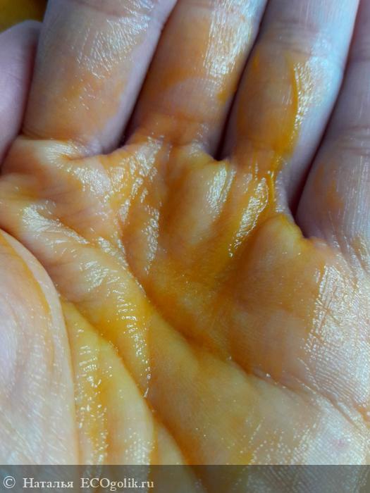 Хотя, если подумать, именно этот насыщенный аромат и говорит о натуральности продукта. Никаких отдушек, только чистая, концентрированная облепиха. Скорее всего, производитель решил не маскировать его чтобы подчеркнуть пользу и эффективность маски. Наносится она кстати, тоже как джем – обволакивает кожу, не течет и не растекается. Нужно совсем немного, чтобы покрыть все лицо.