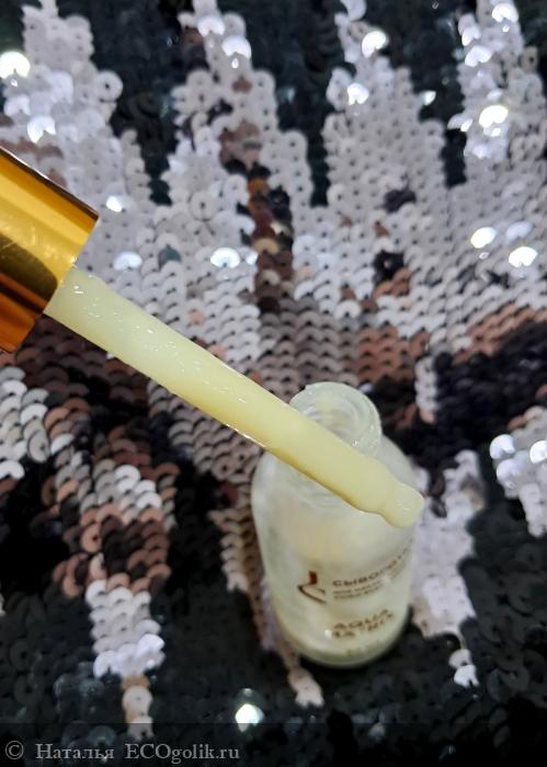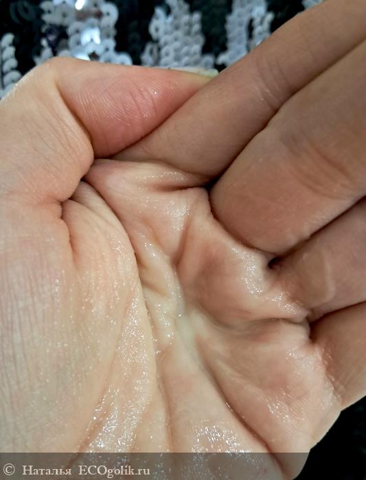 Консистенция сыворотки легкая, что позволяет ей быстро впитываться в кожу и не оставлять ощущения липкости. Она легко распределяется по поверхности кожи и беспечивает мгновенное увлажнение. Продукт имеет светло-бежевый цвет и напоминает жидковатый гель, благодаря чему идеально подходит для утреннего ухода, становясь отличной базой под макияж