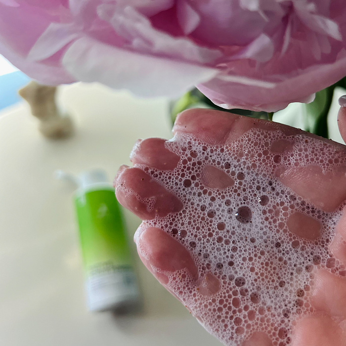 Гель быстро смывается, без чувства липкости, кожа им не пахнет. За увлажнение отвечает зеленый чай, зеленый кофе и масло амаранта.
