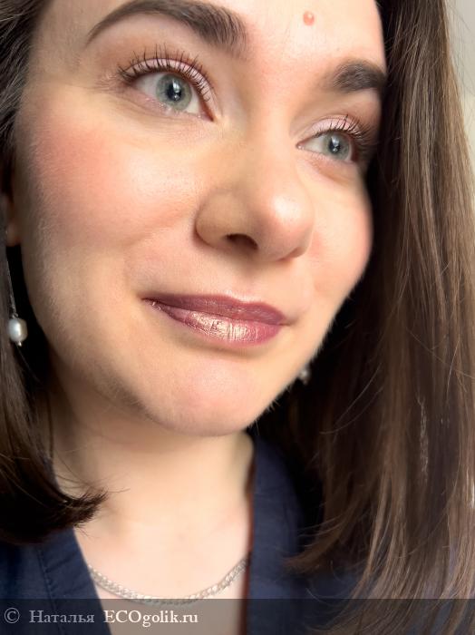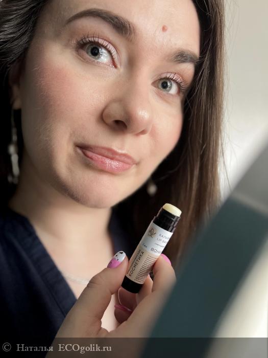Текстура приятно ложится, впитывается в кожу губ и делает их мягче. От бальзама нет белой полоски на губах при смыкании, он комфортно ощущается, не оставляет липкости. Данный бальзам люблю использовать перед прогулкой с сыном, т к губы меньше сохнут и не трескаются.