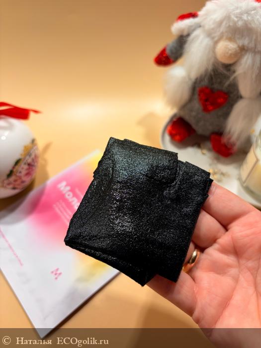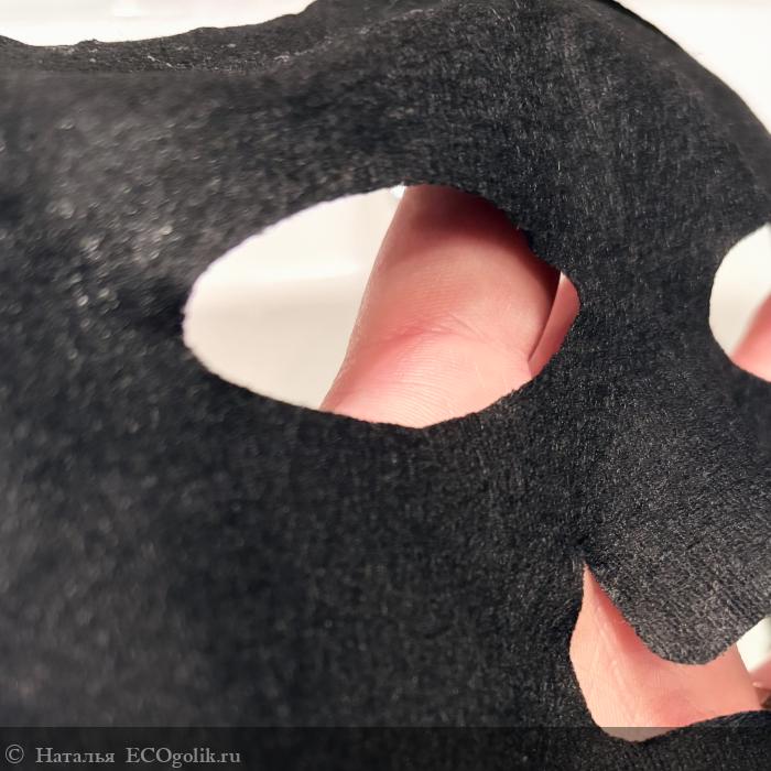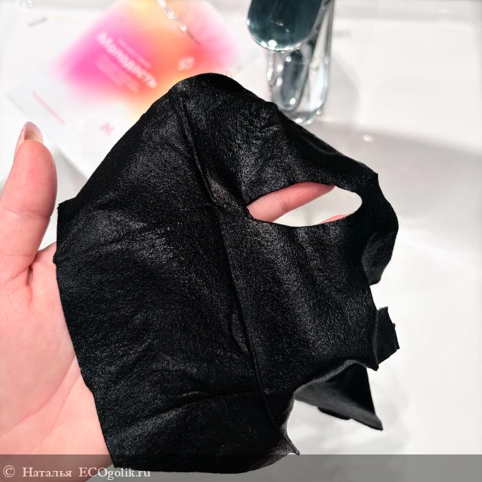 Масочка сложена в несколько слоев, видно, что она пропитана. Пропитки нужное количество, так как лишнее не стекает и в то же время она не сухая: