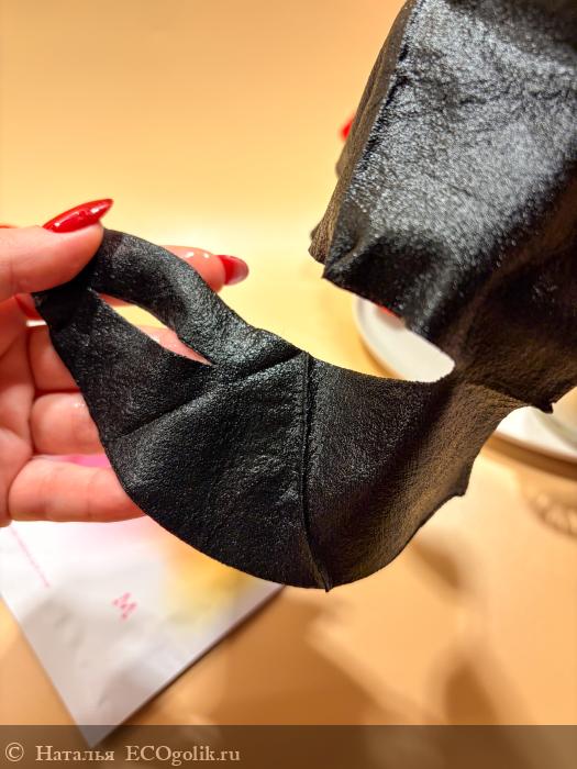 Через 20 минут снять маску и распределить остатки. За это время видно, что драгоценная пропитка впиталась каждой клеточкой и ткань высохла, стала словно матовой.