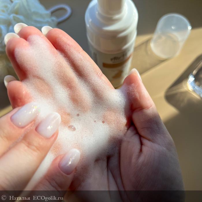 Это так вкусно пахнет, настоящий восторг был у обоняния! Средство хорошо пенится, распределяется во время мытья, после смывания не ощущается на коже. Не сушит. Тактильно кожа мягкая и увлажненная. Аллергии не возникло.