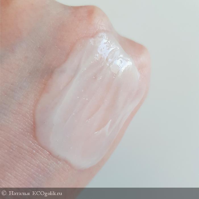 - текстура легкая и приятная, жидкий, молочного цвета, полупрозрачный.
