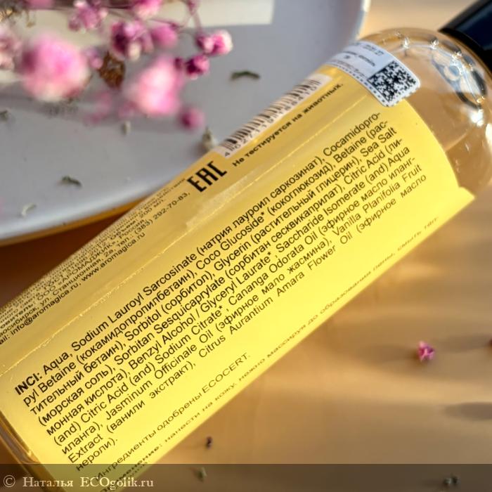 Пахнет просто божественно, ощущается вцелом сладковатыми нотами, дарит чувство свежести и приятные яркие ощущения, улучшает настроение. Кожа чистая, без чувства сухости, стянутости, отлично подходит для ежедневного применения.