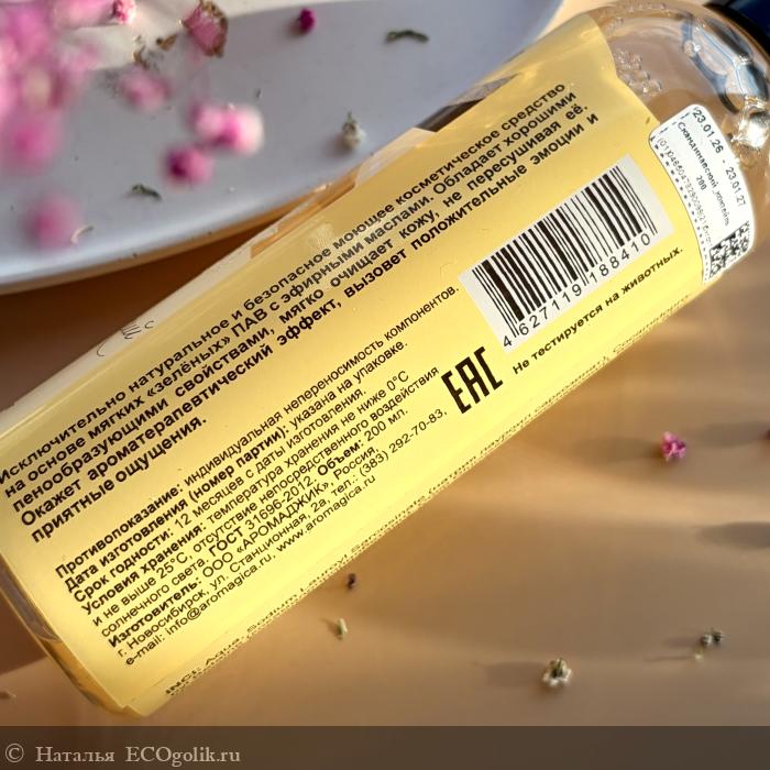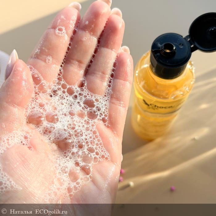 Гель прозрачный, обладает хорошими пенообразующими свойствами, бережно очищает кожу от различных загрязнений, не пересушивая. Пенка ароматная и нежная, легко смывается с кожи без чувства липкости.