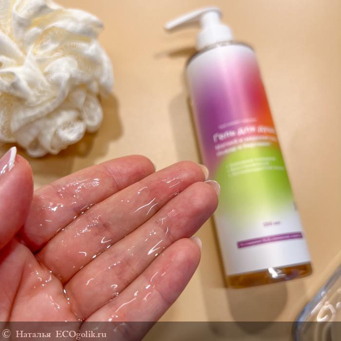 Мне очень понравилось оформление - яркая красивая этикетка, не перегружена информацией или картинками. Гель находится в прозрачном флаконе, через который видно цвет геля и даже трубочку с пружинкой) Объем 250мл, стоимость на оф.сайте 620р. По периметру наклейки есть вся необходимая потребительская информация. Состав натуральный и одобрен сервисом проверки: https://ecogolik.ru/sostav_kosmetika/result/318708... Косметические действие оказывает антибактериальное, смягчающее и регенерирующее.
