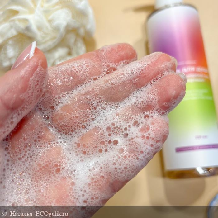 При взаимодействии с водой образуется нежная пенка, которая легко смывается. При ежедневном использовании кожа тактильно мягкая, без шелушений. Нет желания побыстрее нанести крем)